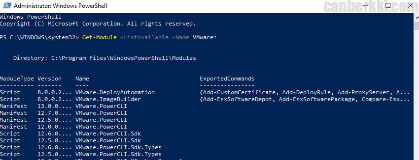 Get-Module -ListAvailable -Name VMware* |